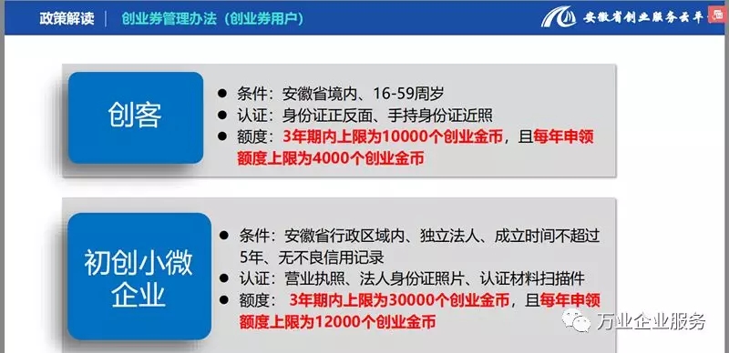 為貫徹落實黨的十九大關于鼓勵創業帶動就業的精神,深入實施安徽省五大發展行動計劃,提升創業和初創企業在共建共享發展中有更多獲得感,降低創業成本,安徽省人社廳與財政廳通過發行電子創業劵的形式為創業者和初創企業提供補貼。全省16個地市30多家服務商滿足你創業期間的所有需求。