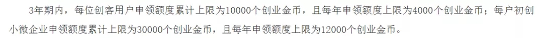 補貼金額:小微企業申領額度累計上限為30000個創業金幣(3000元),且每年申領額度上限為12000個創業金幣(1200元)